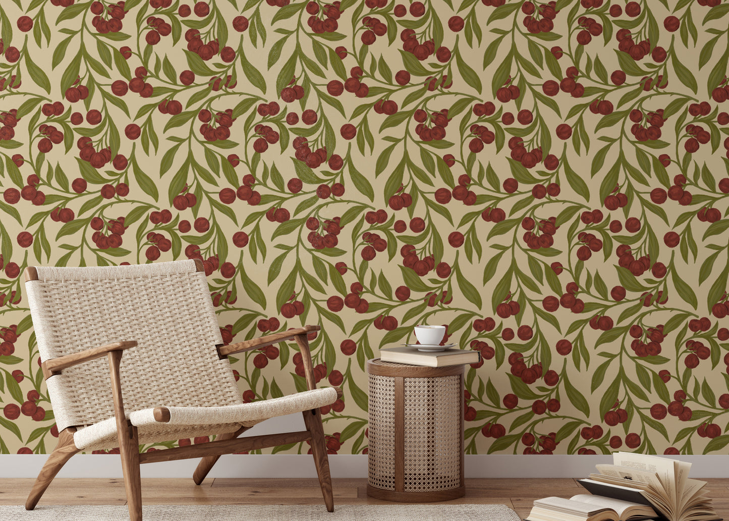 Nature-inspired red wallpaper with autumn berries for warmth.