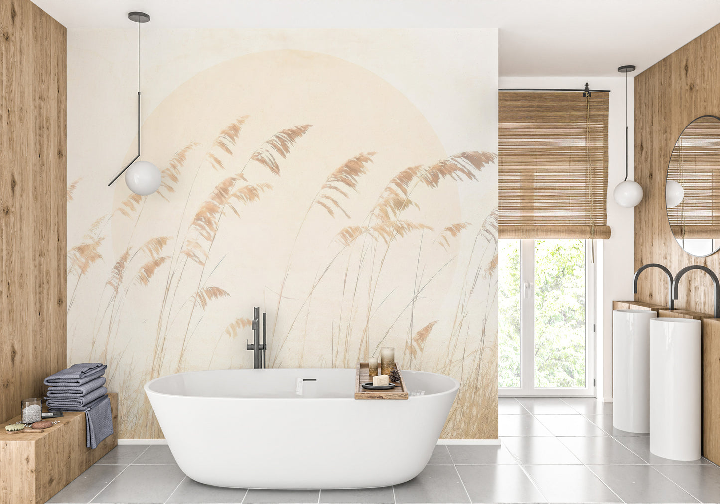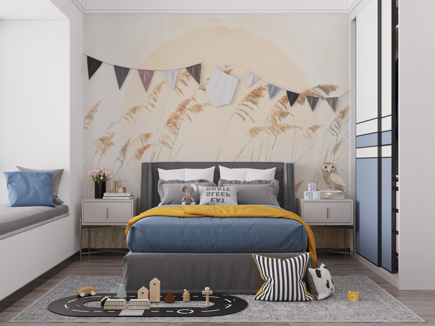 Explore the tranquil charm of our beige reed wallpaper mural, the perfect addition to any bedroom seeking a soft, serene ambiance. The gentle reed pattern provides a soothing backdrop, ideal for creating a restful retreat. Crafted from high-quality materials, this durable mural brings a subtle natural aesthetic to your space, complementing any decor without overwhelming it. The neutral beige palette offers versatility, blending seamlessly with various color schemes and bedroom furnishings. Whether you're looking to create a minimalist haven or a cozy, inviting area, this wallpaper is a superb choice. Its ease of application and maintenance ensures that your space remains both stylish and practical, enhancing your home's overall comfort and elegance.