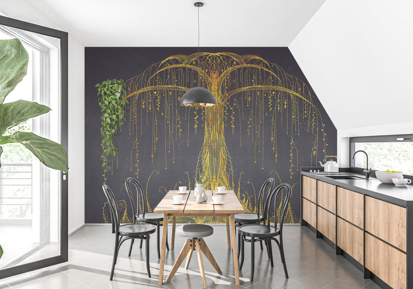 This piece is a favorite among DIY enthusiasts, interior designers, and real estate professionals for its dynamic visual impact and ease of application. Whether enhancing the ambiance of a commercial property or adding a statement piece to a home, the gold abstract ornamental tree wallpaper offers a blend of luxury and contemporary art that captivates and delights.
