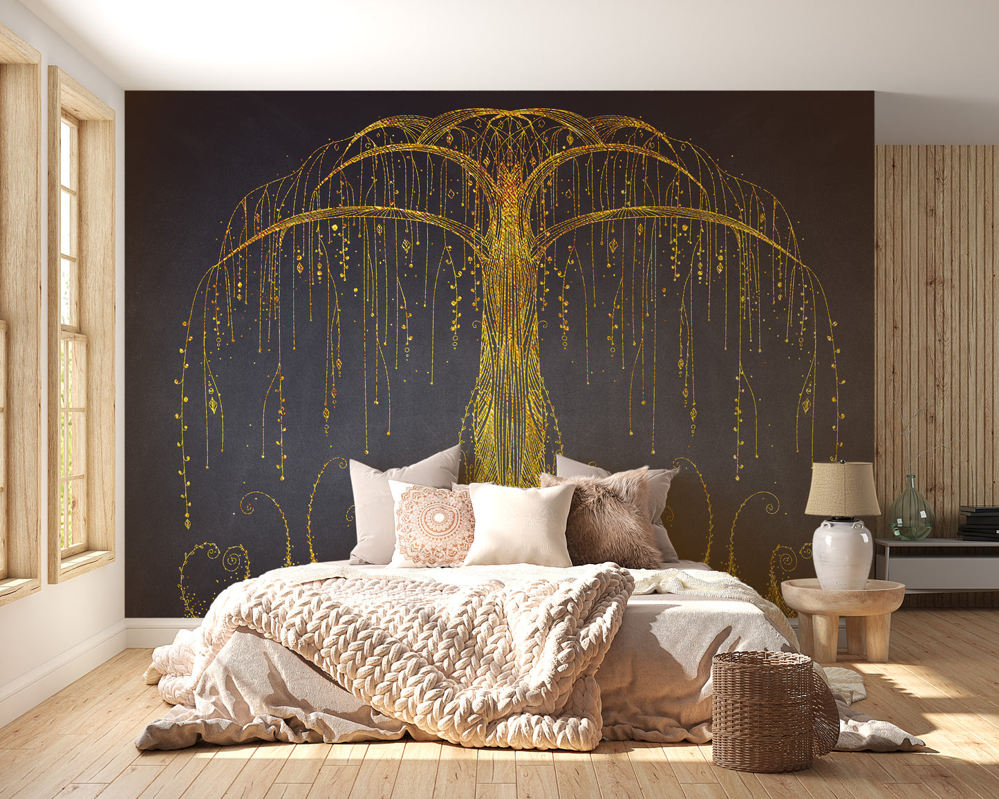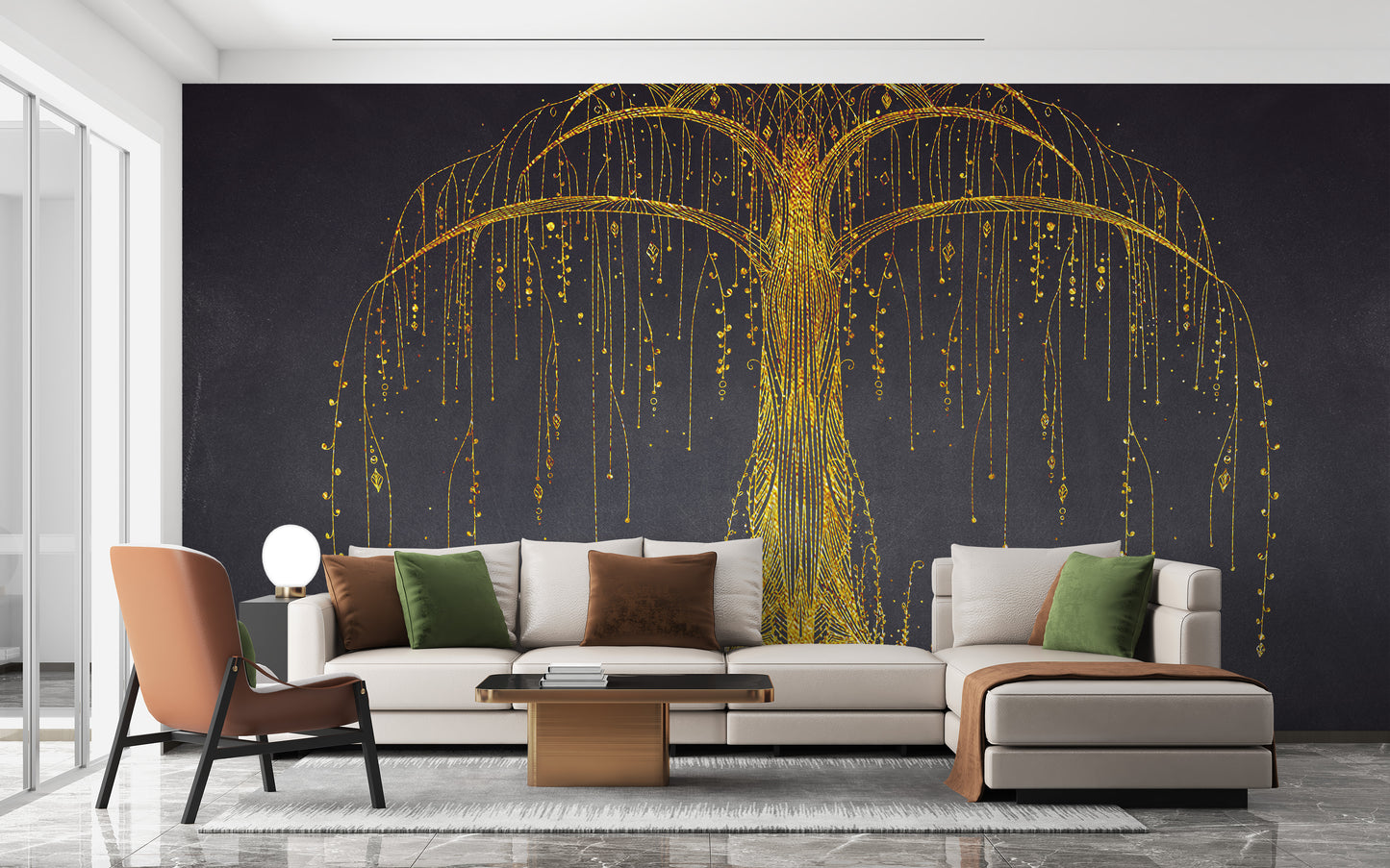 Gold Abstract Ornamental Tree Wall Murals - Giffywalls