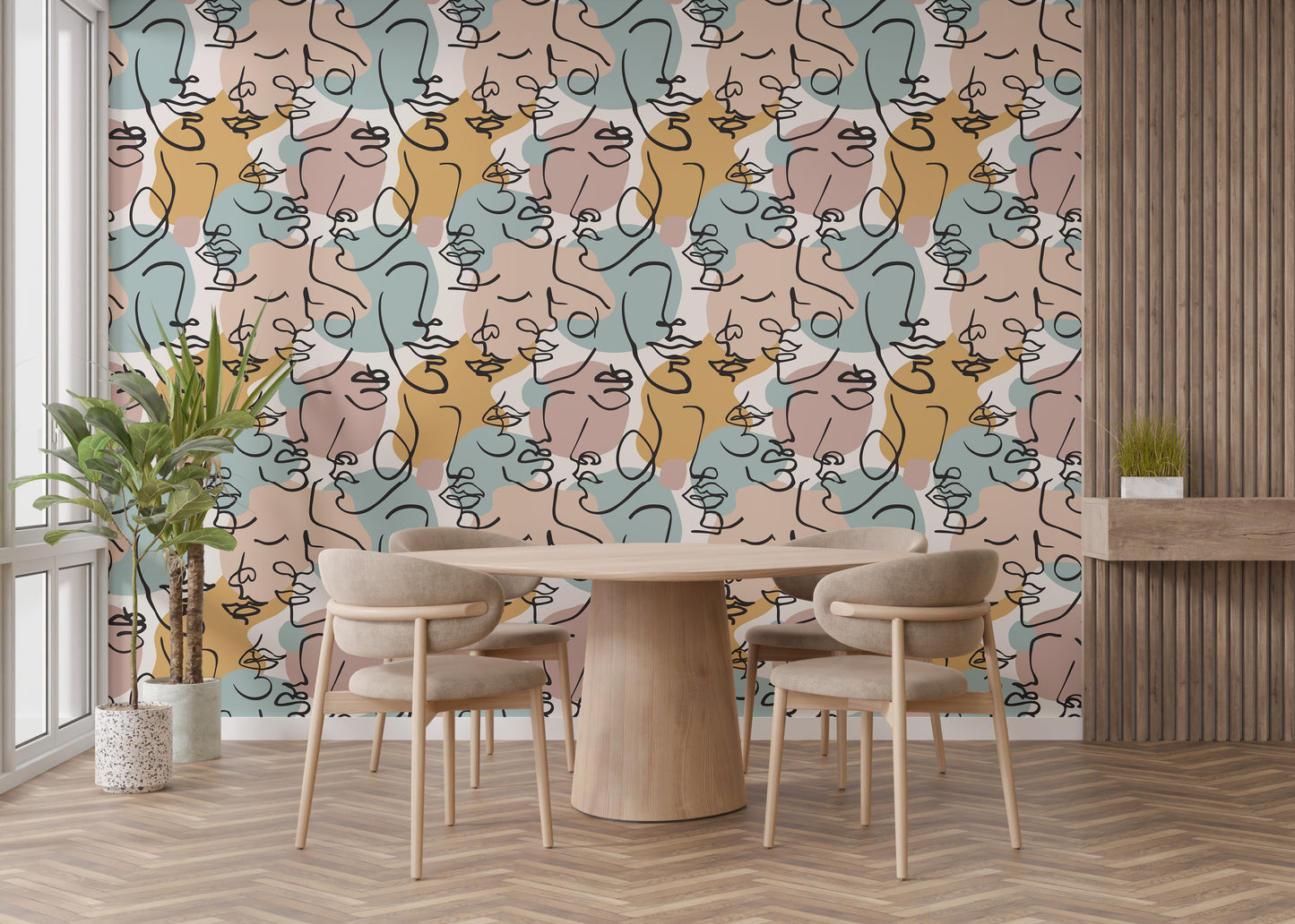 Unveil the essence of contemporary elegance with our modern human face line art wallpaper. This striking design merges the simplicity of line art with the profound complexity of human expressions, creating a captivating backdrop for any room. Crafted for those who appreciate art that speaks without saying a word, this wallpaper transforms your space into a gallery of modern sophistication. Its minimalist aesthetic highlights every curve and line, offering a unique blend of style and personality. Perfect for living rooms, bedrooms, or offices, this wallpaper invites viewers to pause and ponder, making every glance an encounter with beauty. Don't just decorate; make a bold statement. Elevate your interiors with a piece that stands at the intersection of art and life. Shop now and bring the power of modern art into your home.