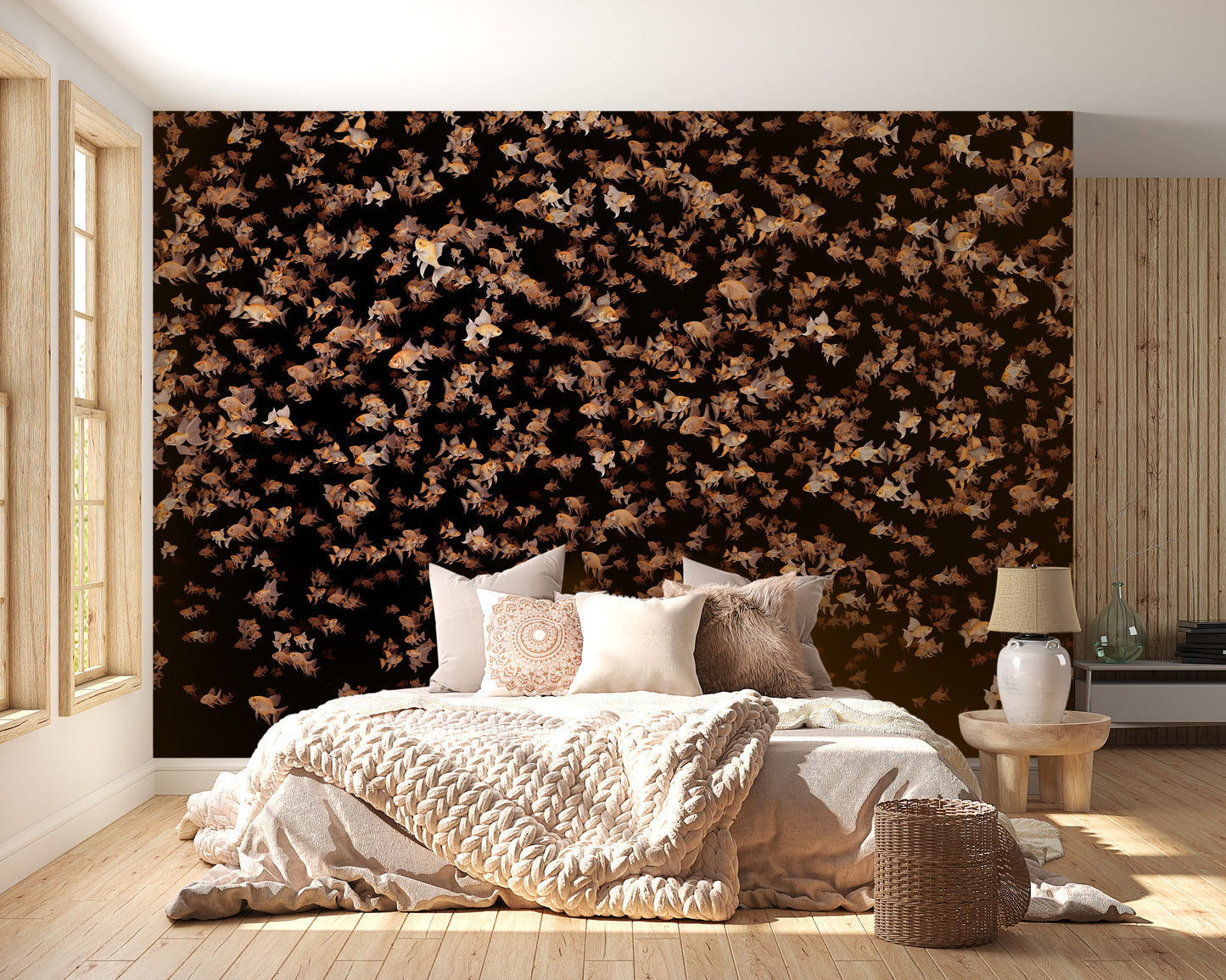 Orange Little Fish Black Background Wallpaper Murals - Giffywalls