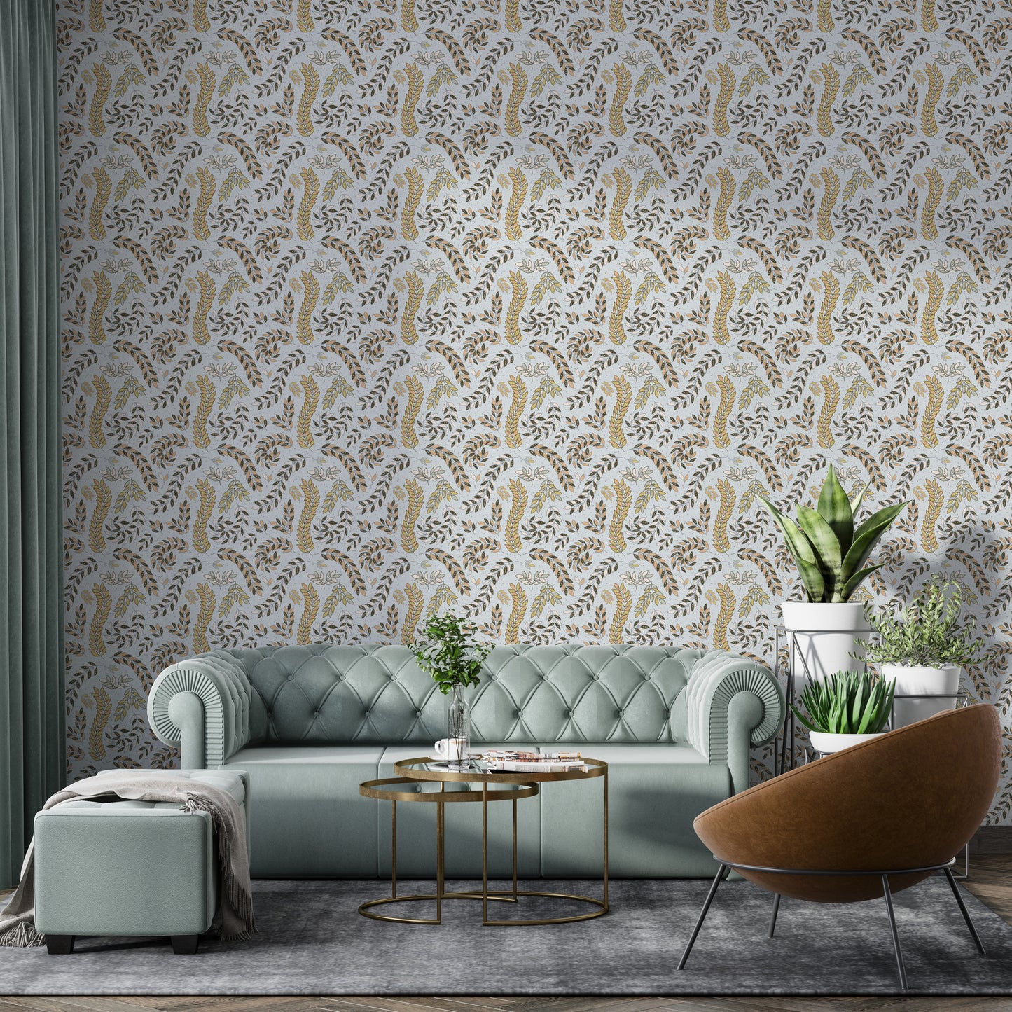 Embrace timeless elegance with our Vintage Foliage Golden and Gray Wallpaper. Featuring hand-drawn leaf motifs in warm golden tones and soft grays, this design creates a delicate yet rich backdrop. Ideal for living rooms, studies, and hallways, it brings nature indoors with a refined vintage twist. The intricate detailing and muted palette make it a versatile option for both classic and contemporary interiors. Peel-and-stick functionality ensures an effortless makeover with no mess or stress.