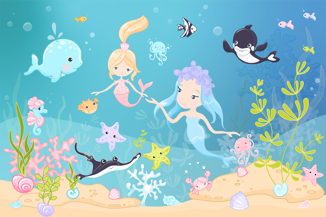 See the beauty of underwater with the underwater adventure wallpaper mural. It has different elements of underwater life such as starfish, coral reefs, mermaids, whales, and fish. Place this on the back of the bathroom door, adding a fun, unexpected surprise for young children. Perfect for kids bathroom.