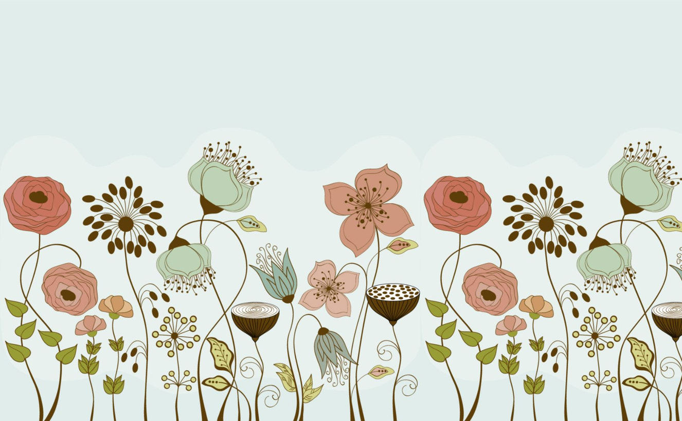 Green Color Retro Vintage Flowers