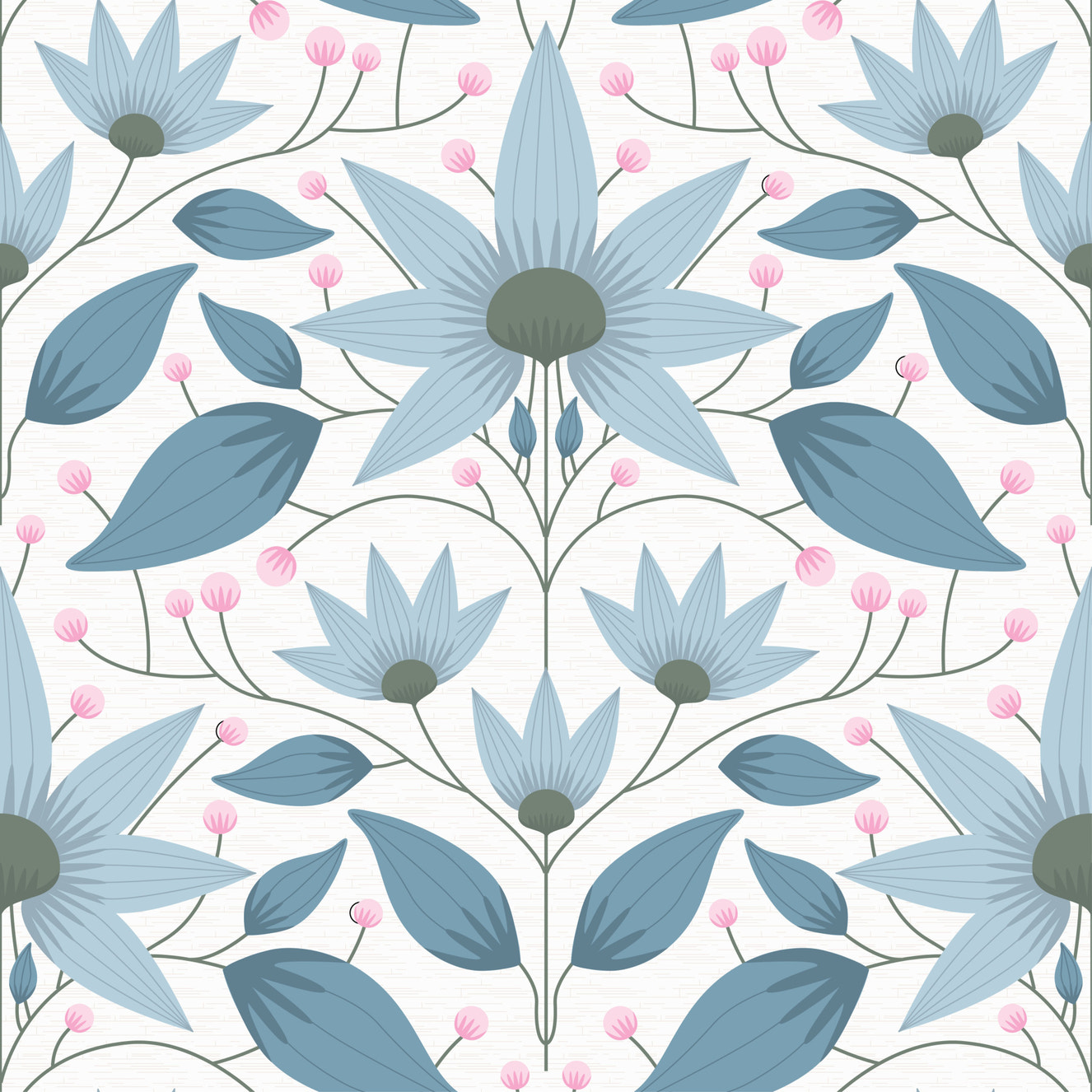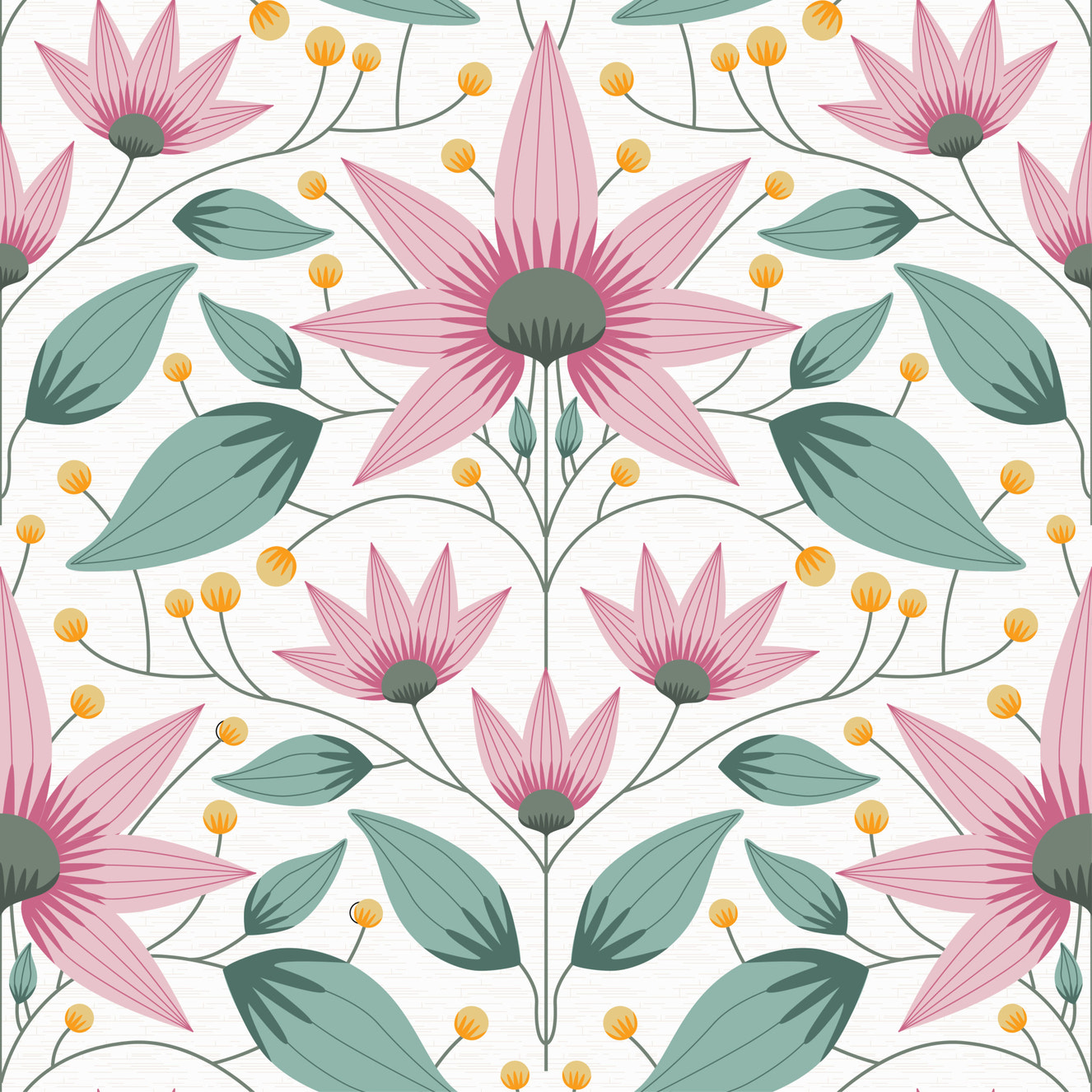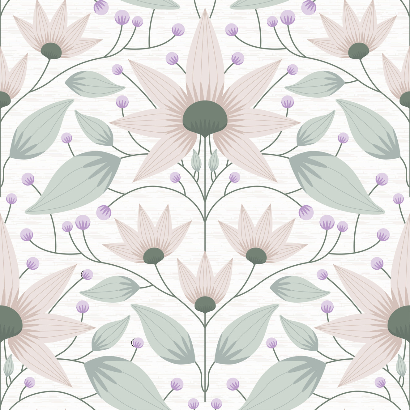 The collection of Ana Bircic wallpapers shows an artistic style that combines soft botanical elements with contemporary geometric patterns. Her designs use calm color schemes which include blush, sage, mist blue, and teal to create patterns that range from floral symmetry to timeless garden prints and elegant damask and Japandi linework and subtle stripes.
