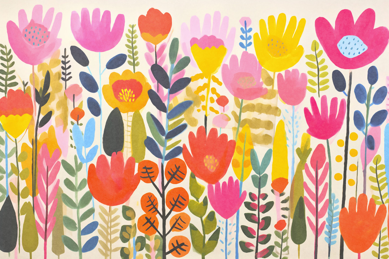 Celebrate the beauty of nature with a retro and colorful twist through the art of Andrea Haase. This vibrant collection is filled with playful and groovy designs, from wavy watercolor patterns to cheerful summer flower meadows. The use of bold color combinations and whimsical themes brings a sense of joy and energy to any space. Whether you're drawn to a retro floral or a colorful abstract pattern, Haase's work is perfect for anyone looking to make a fun yet stylish statement. Let your walls reflect your personality with these unique, high-quality, and artistically inspired wallpapers.