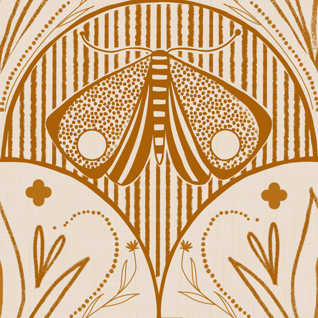 Art Nouveau Butterfly Floral in Cream Burnt Orange