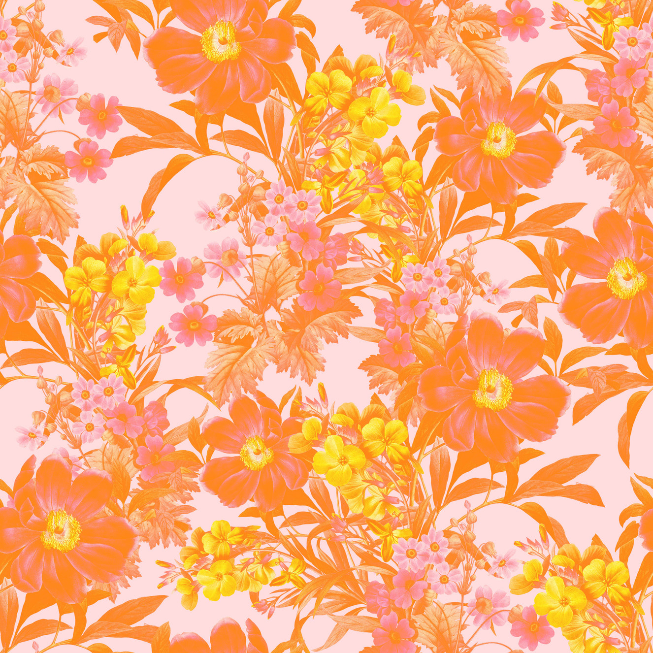 Our folk-art springtime bloom wallpaper is a beautiful way to enjoy the season. This pattern has bright flower shapes that are based on folk art styles. They make any room feel happy and inviting. It's great for kitchens, bedrooms, or any other room with a bit of joy and brightness.