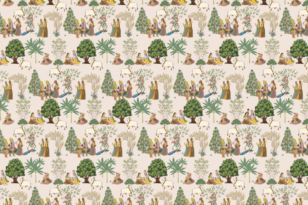 Pichwai Sacred Cows Mango Tree Mural