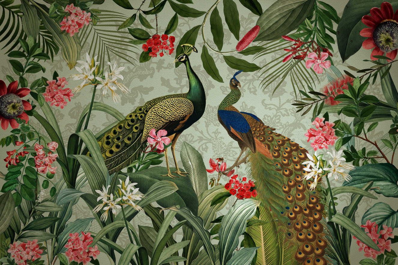 Because of their beautiful, royal look and iridescent feathers, peacocks are often used in wallpaper. Their beautiful feathers can add a bit of class and luxury to your decor and make a striking focal point.
