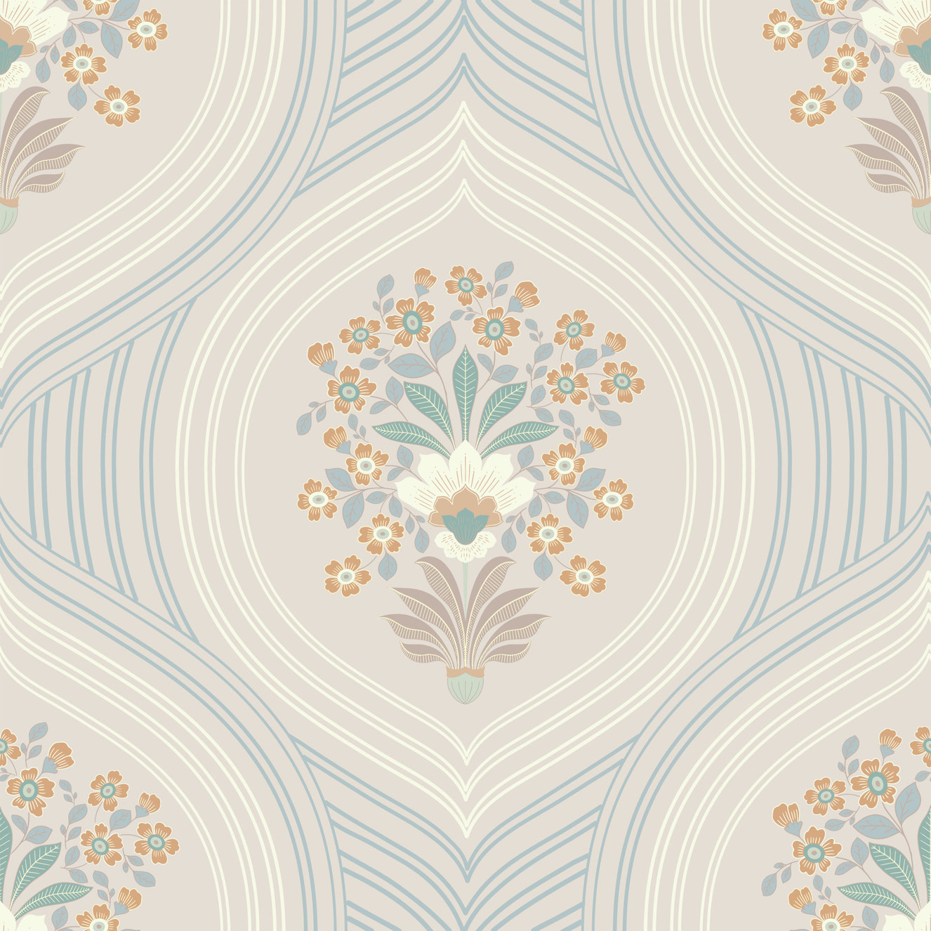Botanical Boho Leaves Wallpaper for Coastal Homes