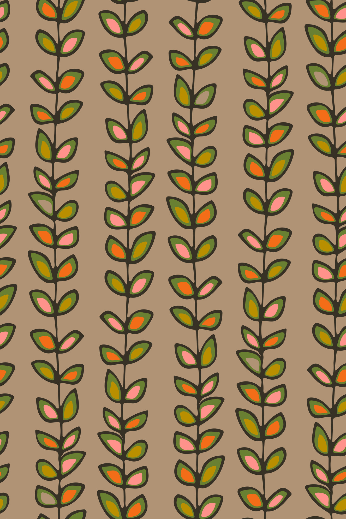 Climbing Vines Stripe Retro Leaves Warm Beige