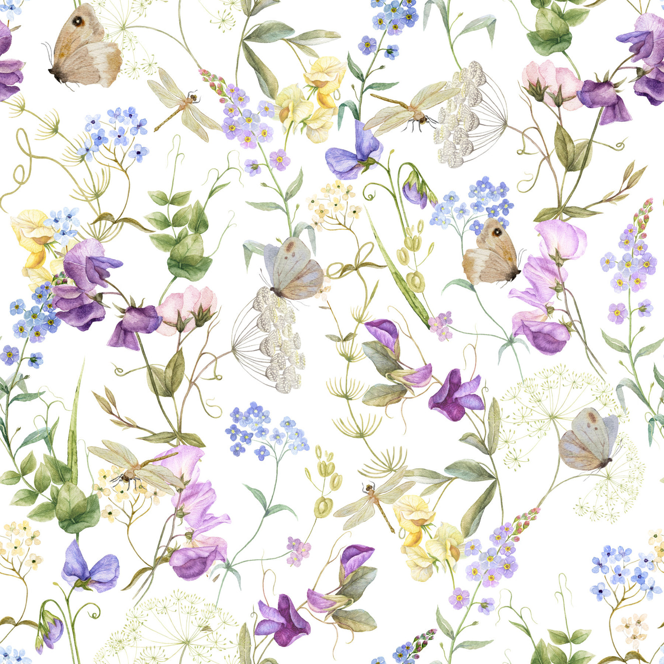 Pink Watercolor Meadow