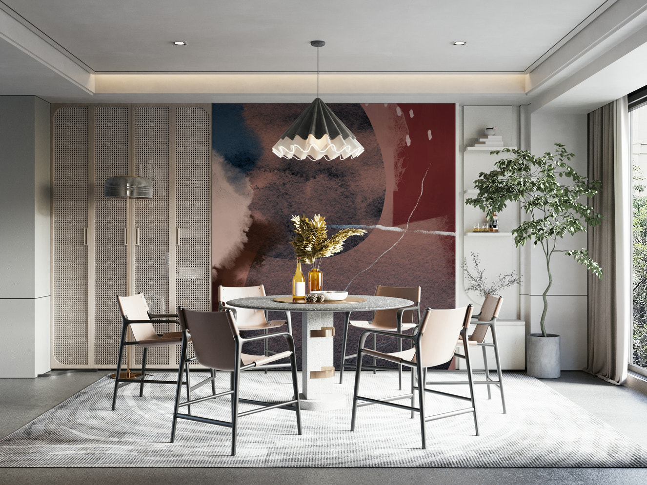 If you are a fan of the changing seasons, an autumn color wall aesthetic gives you a year-round harvest-warmth feeling. Burnt umber, sienna, and mahogany colors are excellent in dining spaces, as they awaken appetite and socializing.