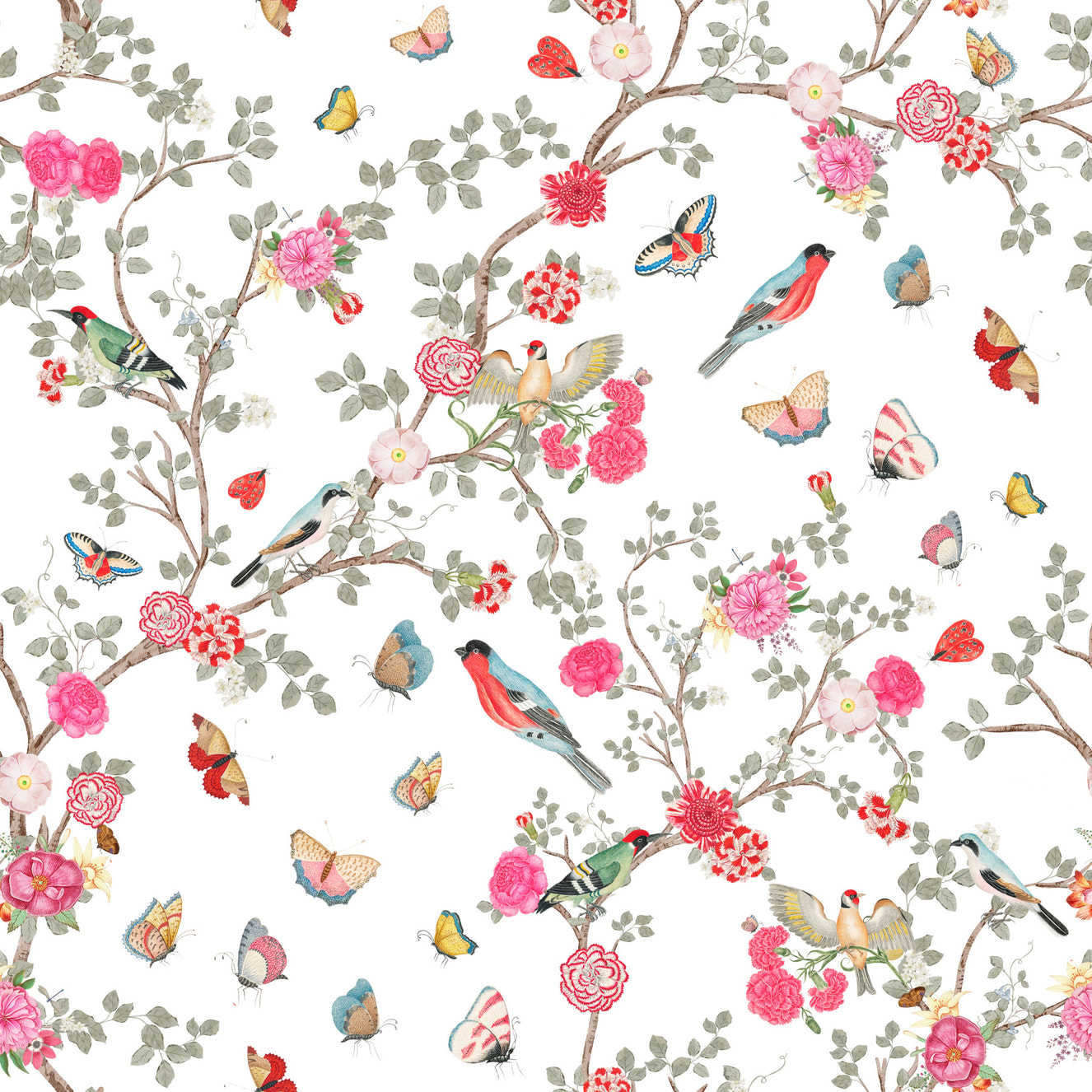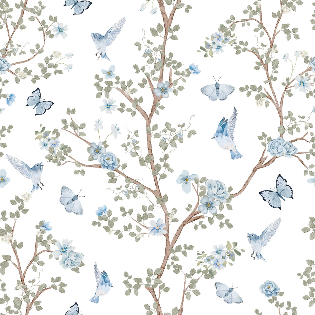 The watercolour garden wallpaper with butterflies looks soft and artsy. The soft mix of colours and butterfly pictures gives any wall a calm, artistic touch and makes for a peaceful background that feels classic.
