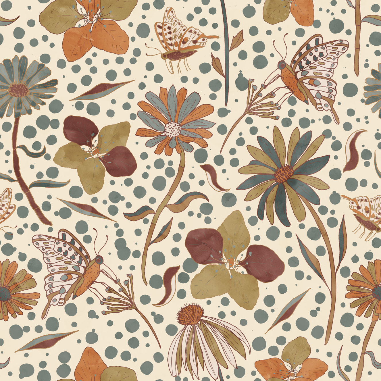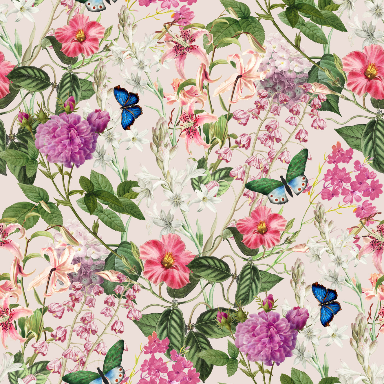 The botanical butterfly background blends the beauty of botanical drawings with the softness of butterflies. This design is perfect for people who want to bring aspects of nature into their homes. The butterflies and plants' fine features look great in home offices and libraries.