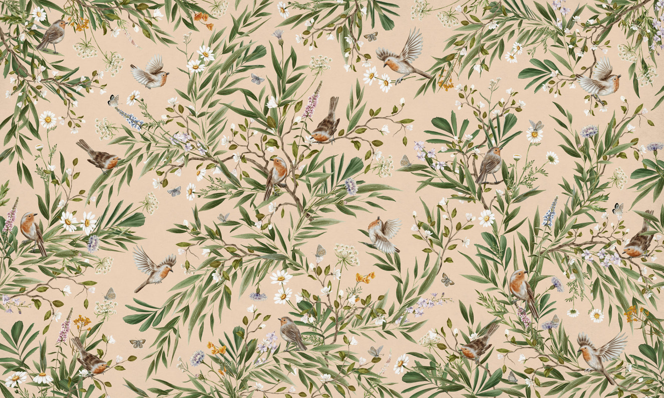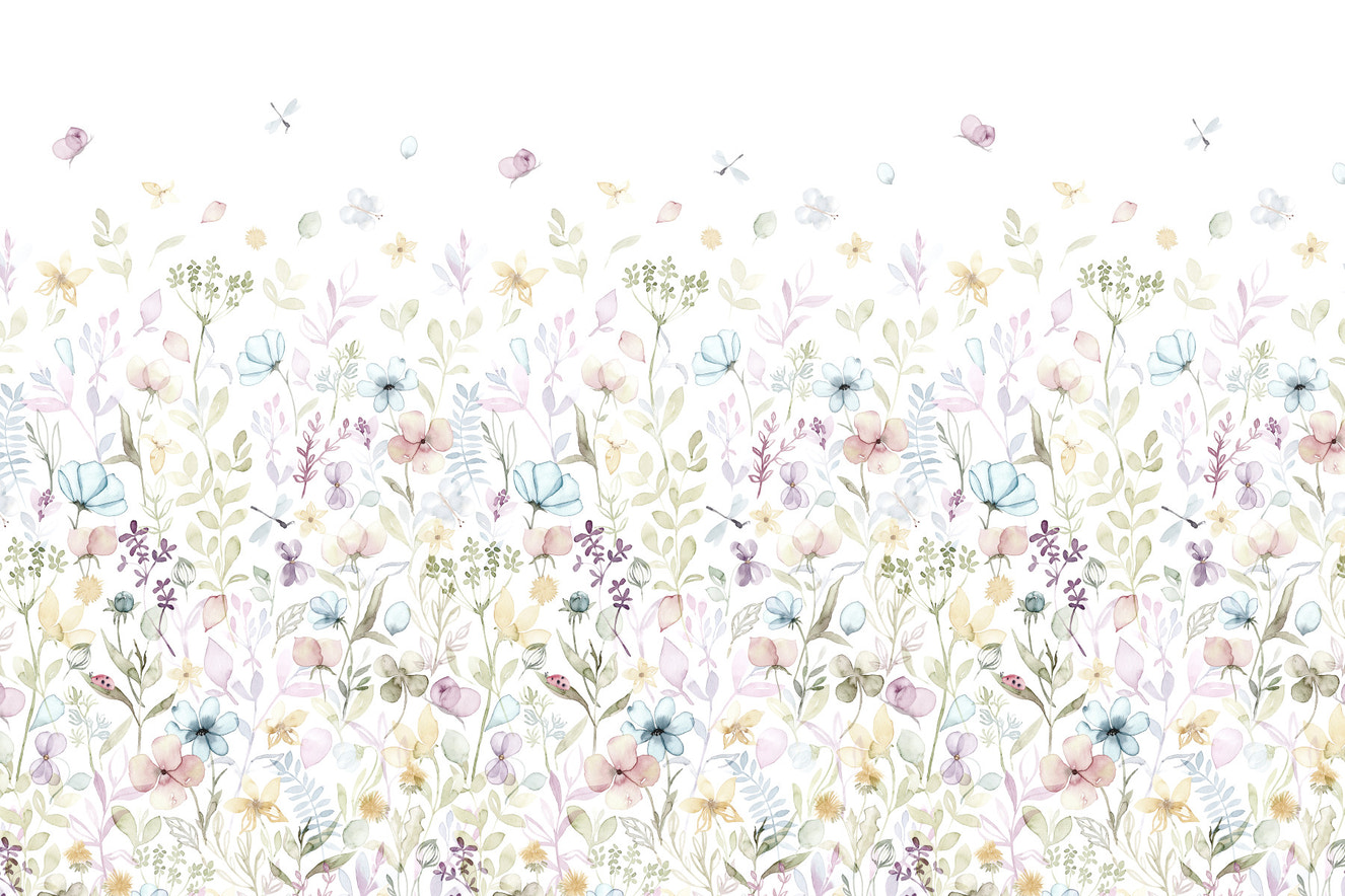 A butterfly meadow mural shows how beautiful it is to watch butterflies fly over wildflower-filled meadows. Any room will feel calmer with the soft, natural tones. People like this wallpaper style in their bedrooms or living rooms when they want a soft, relaxing touch of nature.