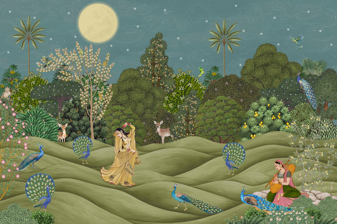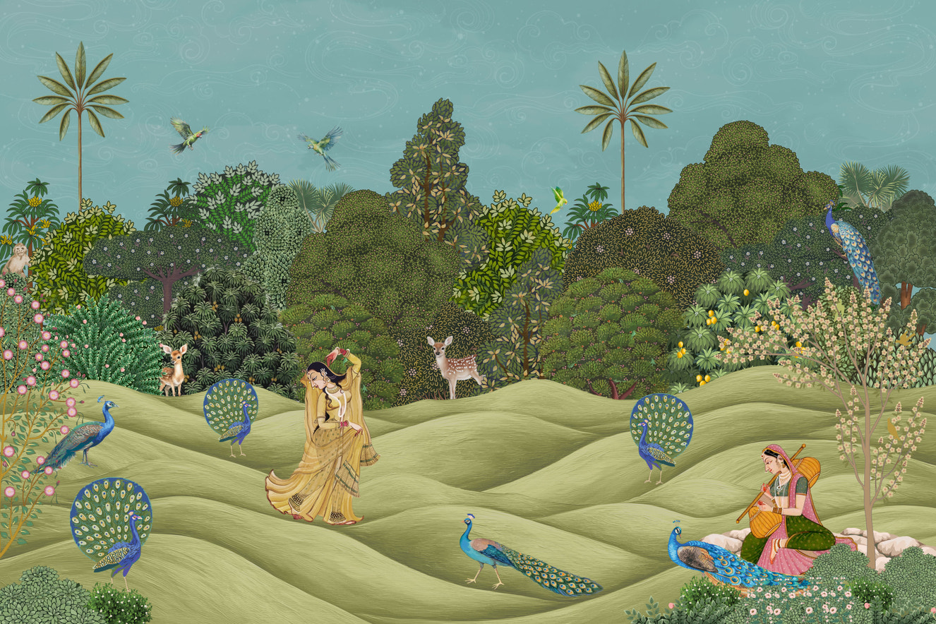 The peaceful scenes of nature come to life in the spring garden chinoiserie wall mural. The lush landscapes, growing flowers, and calm garden settings give off a quiet, old-fashioned vibe that is perfect for giving your space an elegant touch.