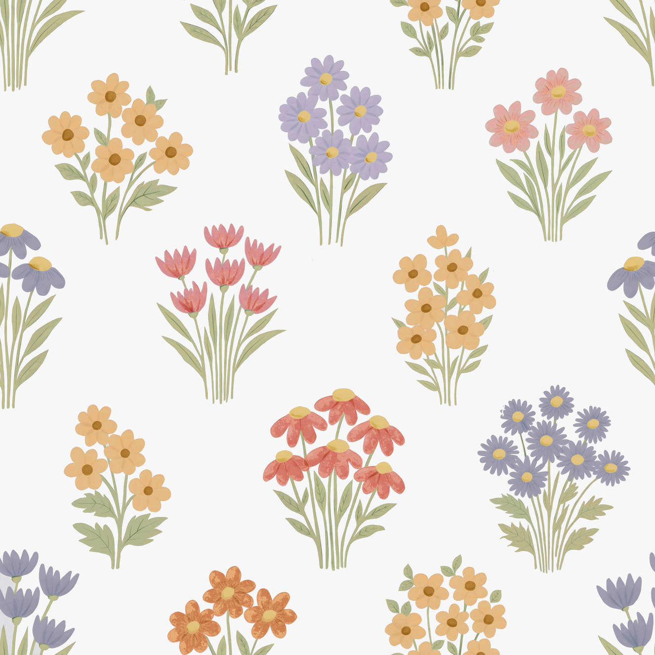 Retro Daisy Floral Wallpaper