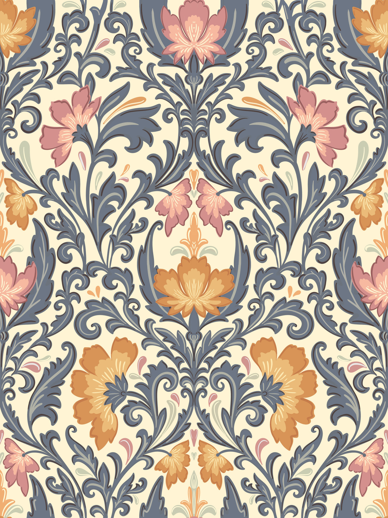 Glamour Floral Damask Warm Peach Fuzz Orange Coral