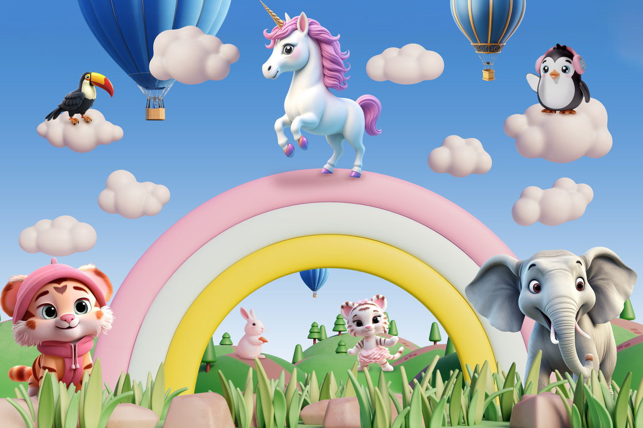 Our kids room wallpaper features elephants in a fantasy world where they can be anything a child can imagine. They can cycle over the sky or be a doctor or a music lover based on the fantasy they want to create. Perfect for toddlers, infants and babies, such elephant art is a must-have decor for your little one’s.