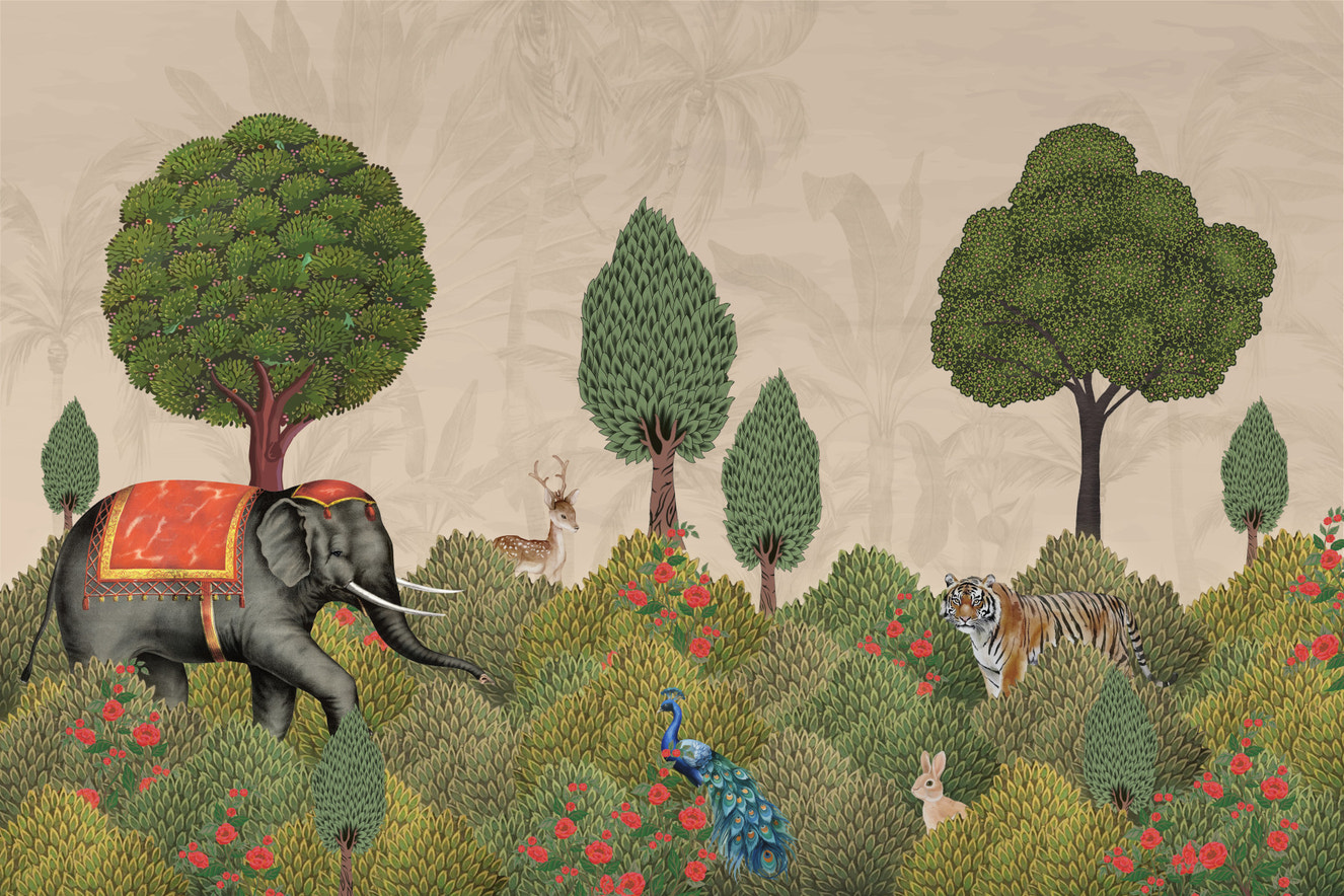 Evoke a wildlife wilderness with tropical elephant murals. They feature Asian elephants or a kingdom of this four-legged creature in our animal wallpaper collection. Perfect for adding visual interests, it's a tool for adding power and friendliness.