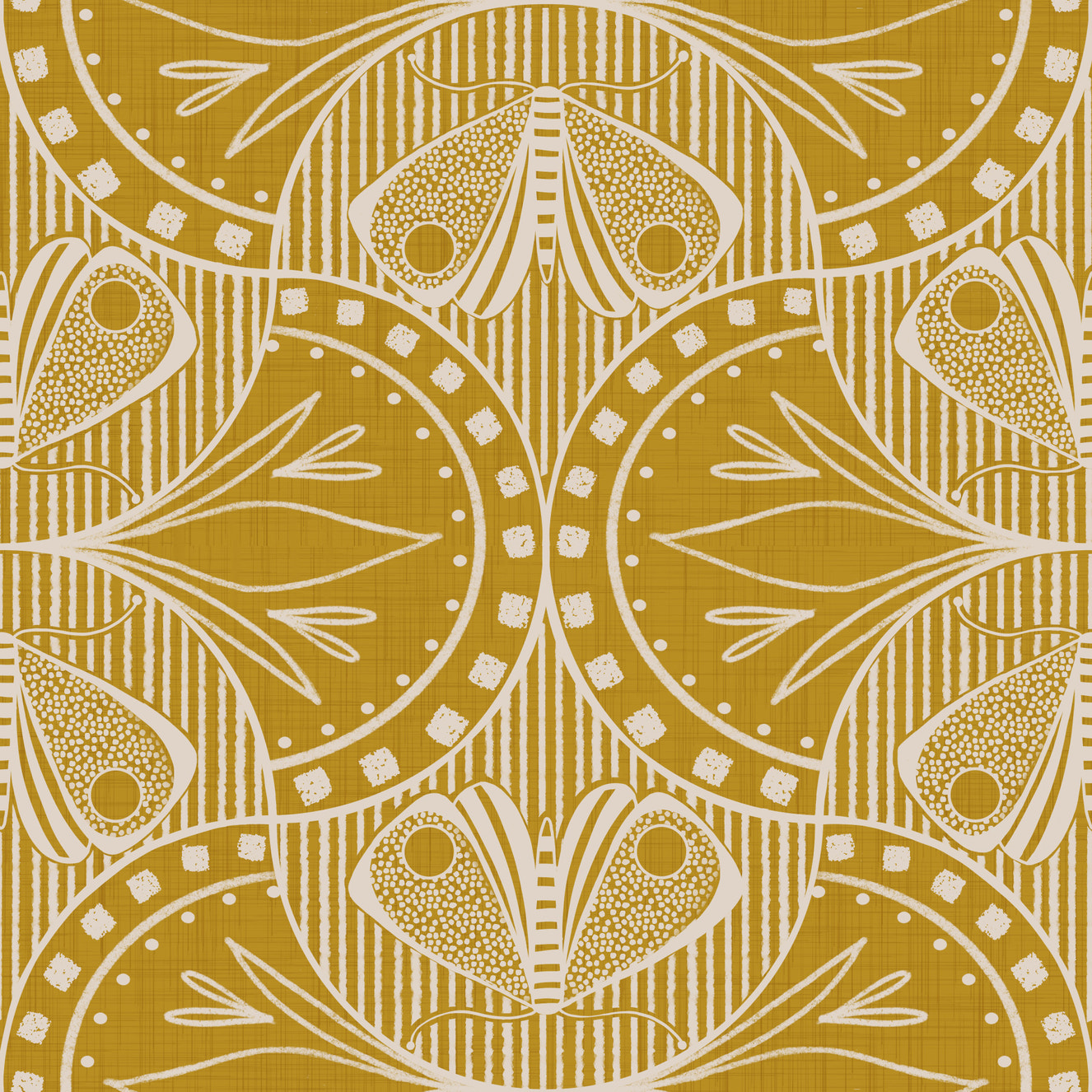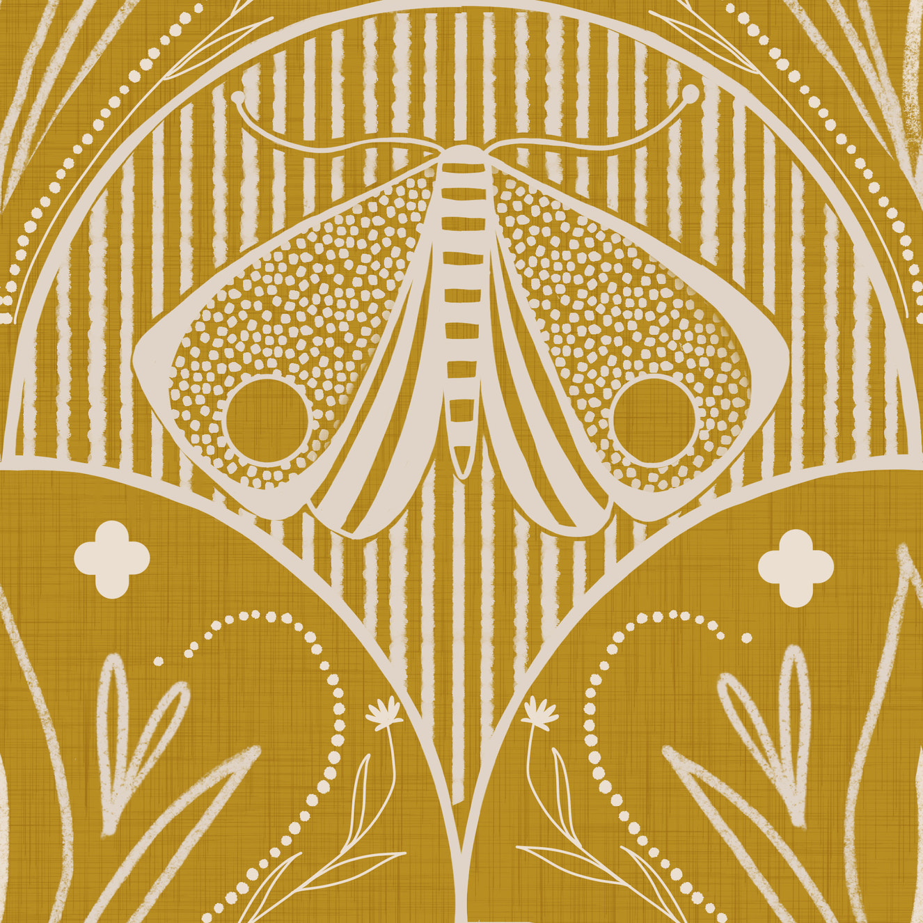 Art Nouveau Butterfly Floral Mustard Gold