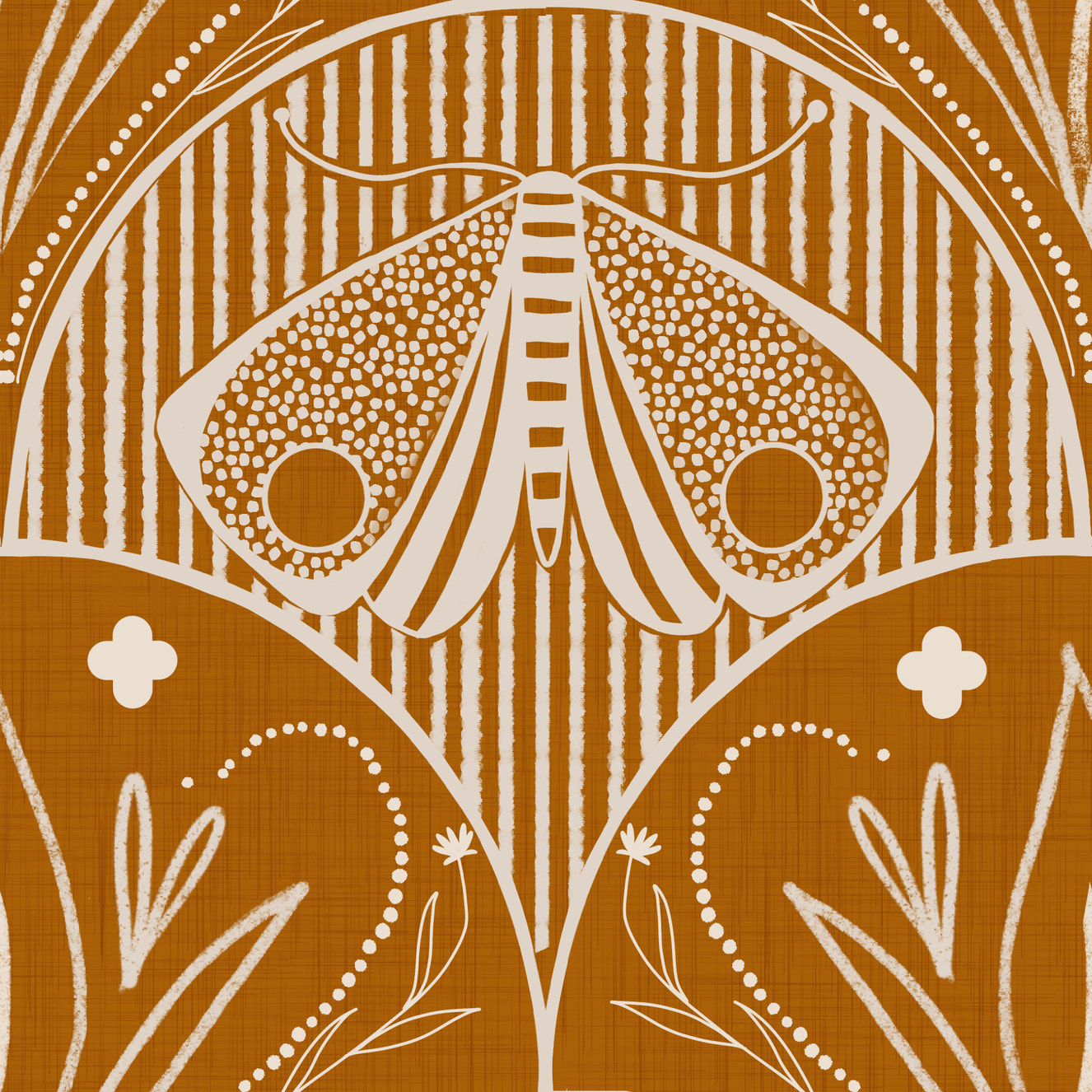 Art Nouveau Butterfly Floral in Burnt Orange