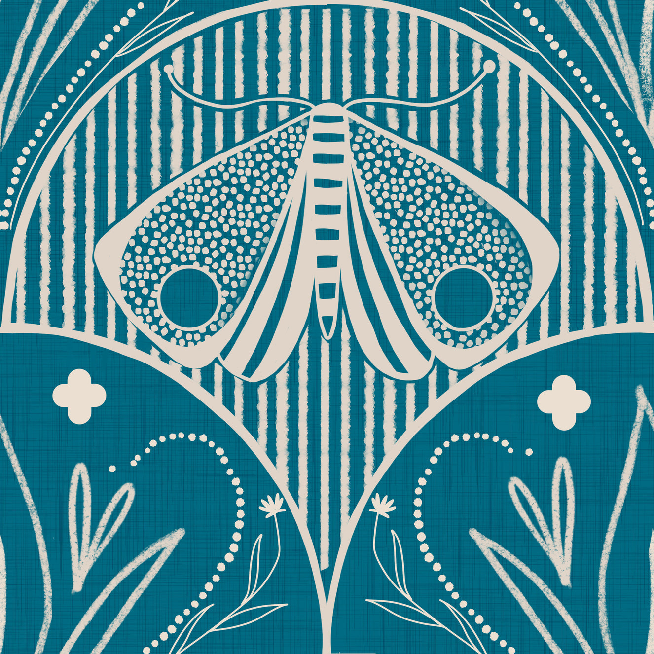 Art Nouveau Butterfly Floral Teal Blue