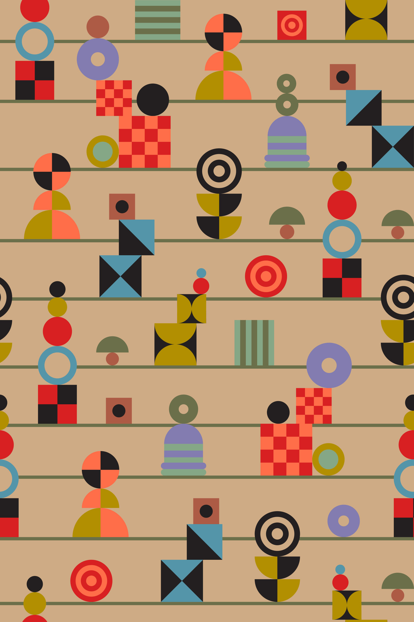 Our collection of vintage graphic pattern wallpaper features geometric shapes in retro style. Radiant and bright, they are lively with classic prints adding warmth and wonder. Perfect for adding nostalgia, it’s an appropriate gift for your older family members.