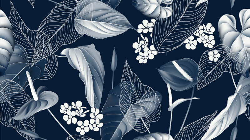 Dark Blue Anthurium & Blue Leaves