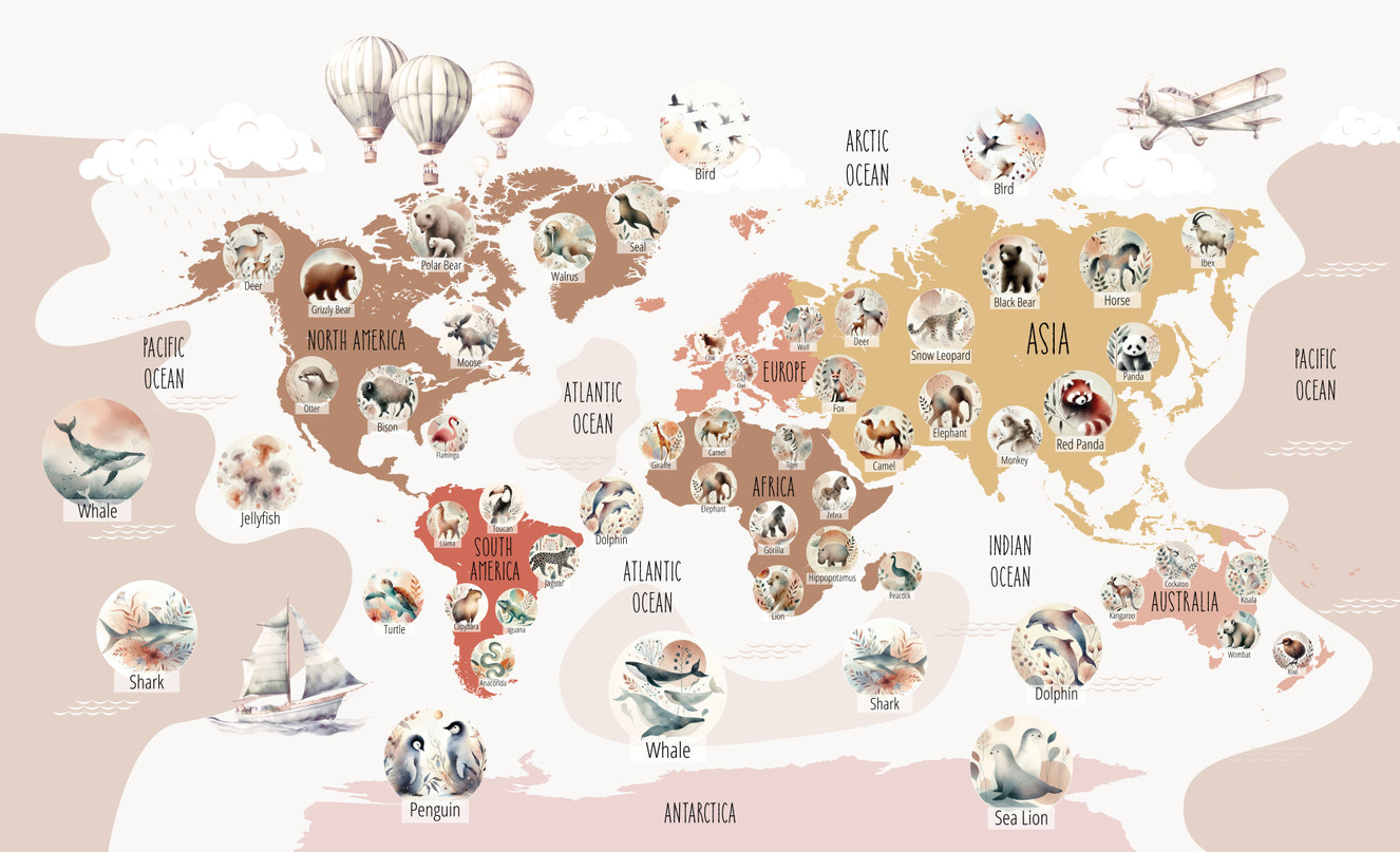 Whimsical Animal World Map