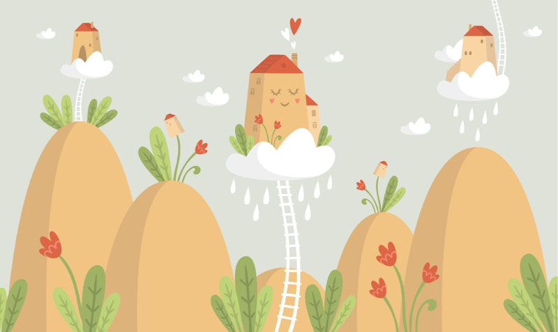 Cartoonish mountain backgrounds with bright peaks, happy suns, and friendly animals are fun and games. These fun designs make kids' rooms look better and help them use their imaginations and be creative.