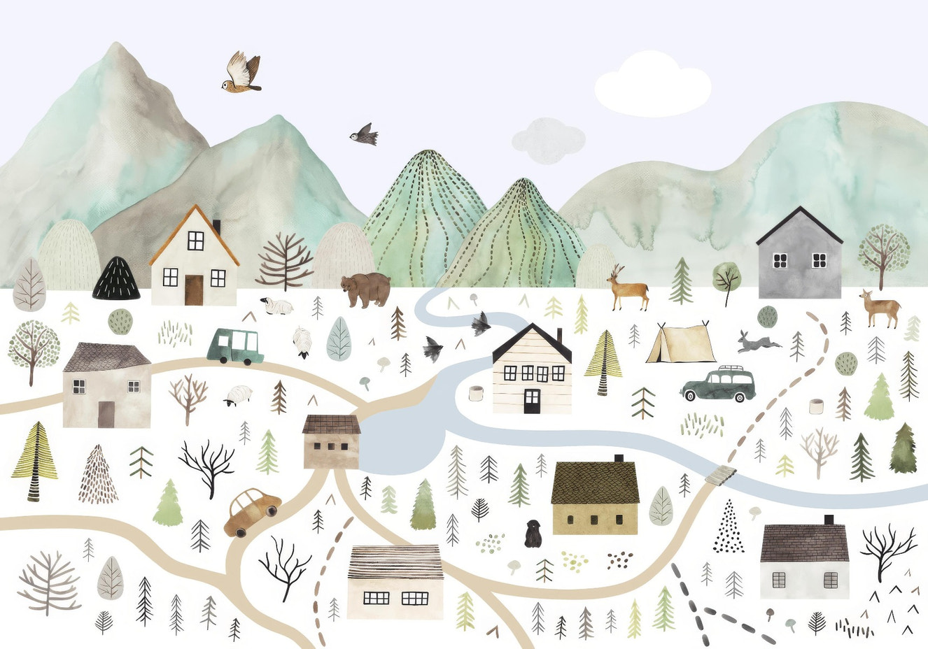 Kids' mountain wallpaper has fun designs that are based on nature and show beautiful peaks, woods, and exciting landscapes. You can organise your kids' rooms in a fun and creative way that makes them feel warmer and more like the outdoors. These wallpapers make a cosy place for kids to imagine, play, and feel connected to nature while enjoying a nicely decorated room.