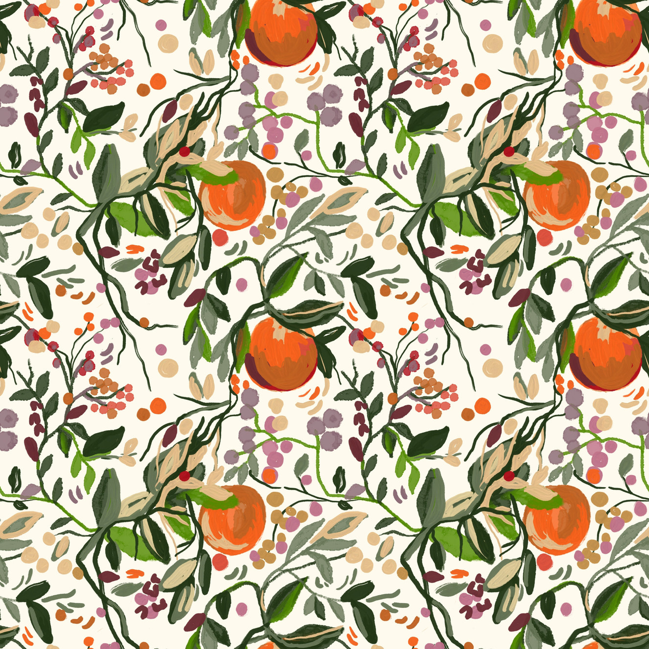 Any room with orange mural feels alive and exciting. Its bright colour can make you more creative and enthusiastic. This colour choice can make a space feel warm and welcoming, from soft peachy tones to bright burnt oranges like the modern floral vines orange design. It's great for places where you want to spread energy and happiness.