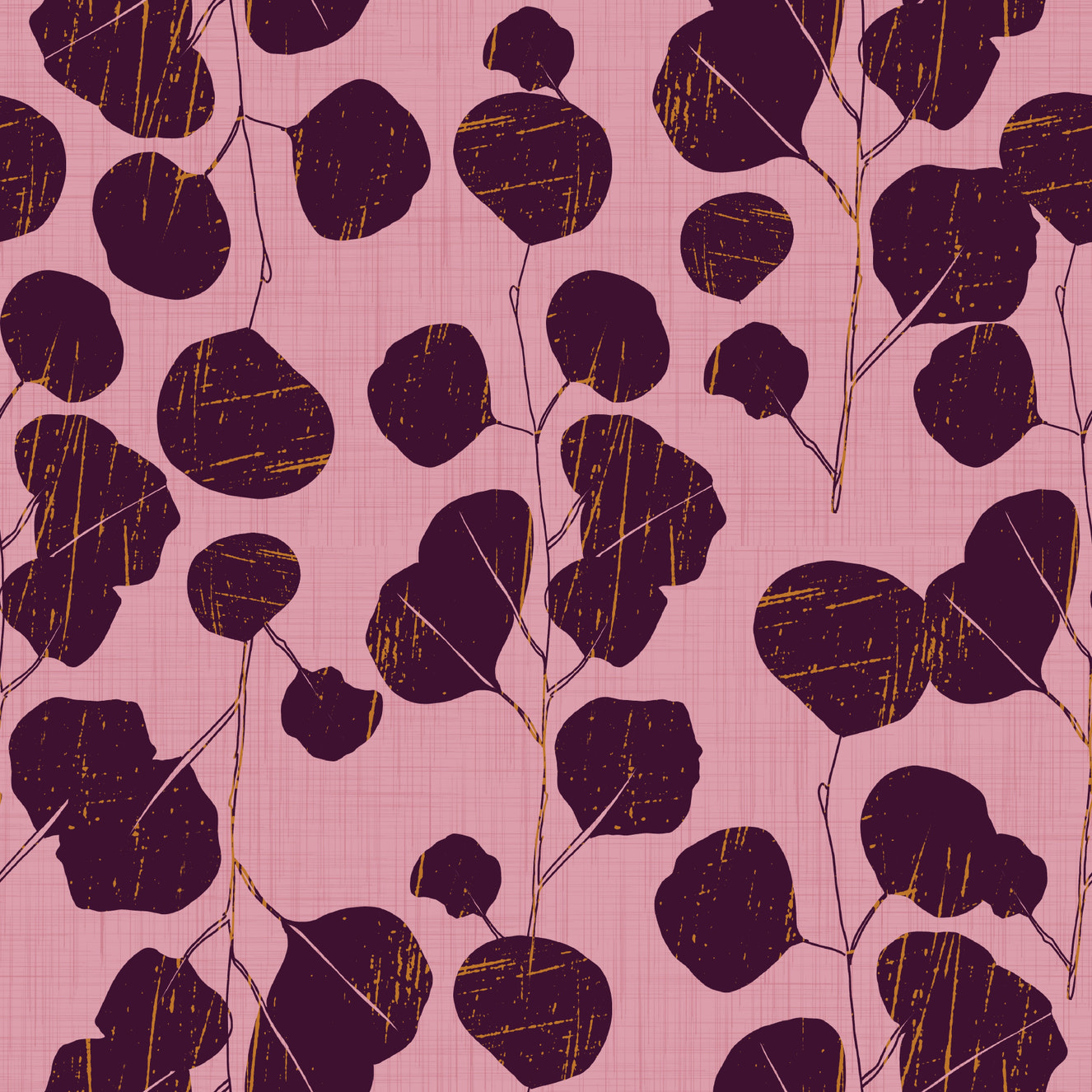 Boho Jewel Tone Botanical Plum Leaves Pink