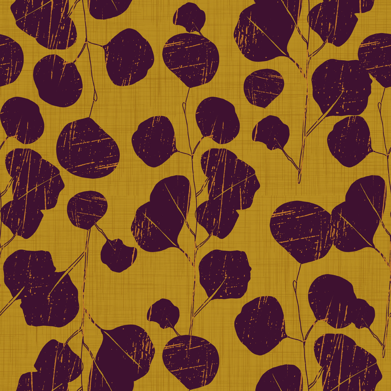 Boho Jewel Tone Botanical Plum Leaves Mustard