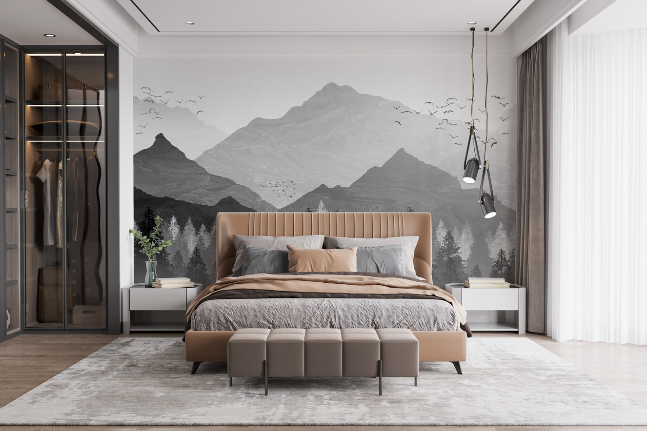 Subtle mountain mural for wallpaper that adds depth without taking over the room looks great in hallways. Pick misty peaks or simple patterns to make a warm transition between rooms.