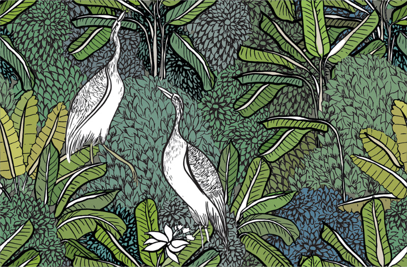Natural tropical forest wallpaper murals will give your home a bright and foreign feel. Tropical wallpapers with lots of lush greenery and colourful patterns are great for making living rooms livelier or making bedrooms feel like they're on vacation.