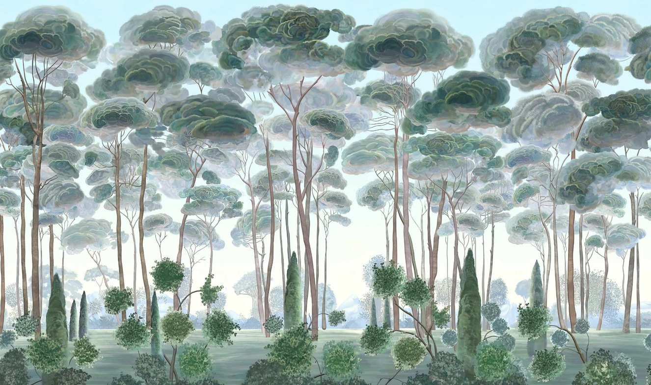 Forest trees wallpaper murals can help you make a calm space. These designs bring the beauty of dense woods and tall trees into any room, making it feel relaxed and peaceful. This is a great way to bring greenery into modern rooms.