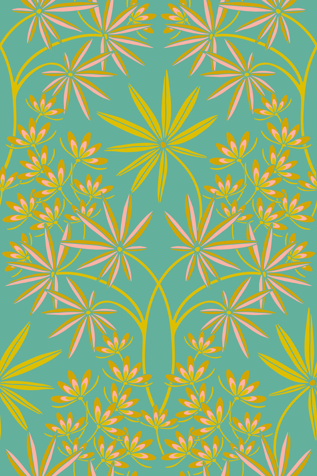 Glamour Floral Damask Maximalist Yellow Turquoise