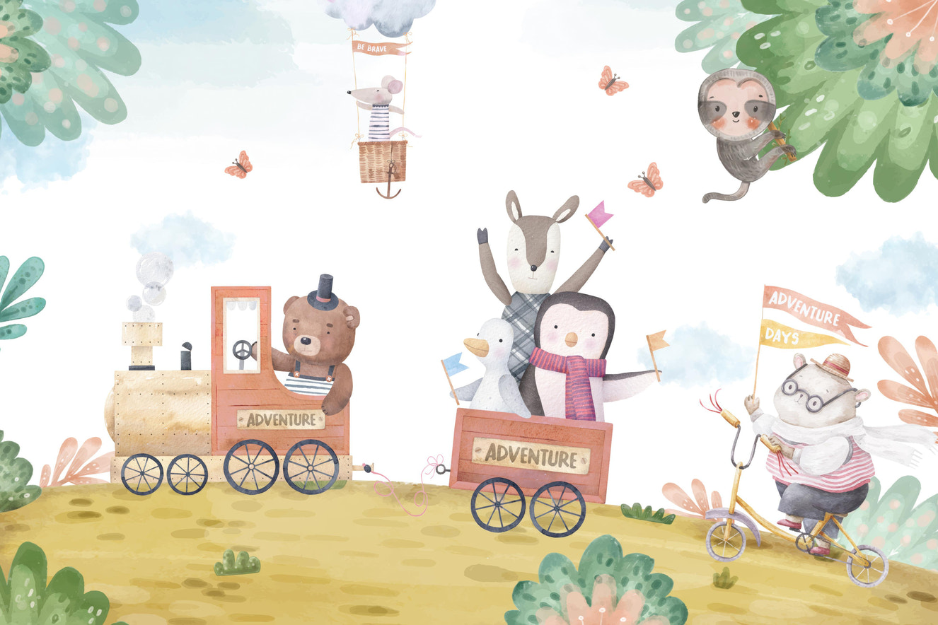 Enjoy the beauty of nature with a woodland creature wall mural. This theme of infant room wallpaper makes a cosy, natural space perfect for a quiet nursery with soft forest animals and peaceful landscapes.