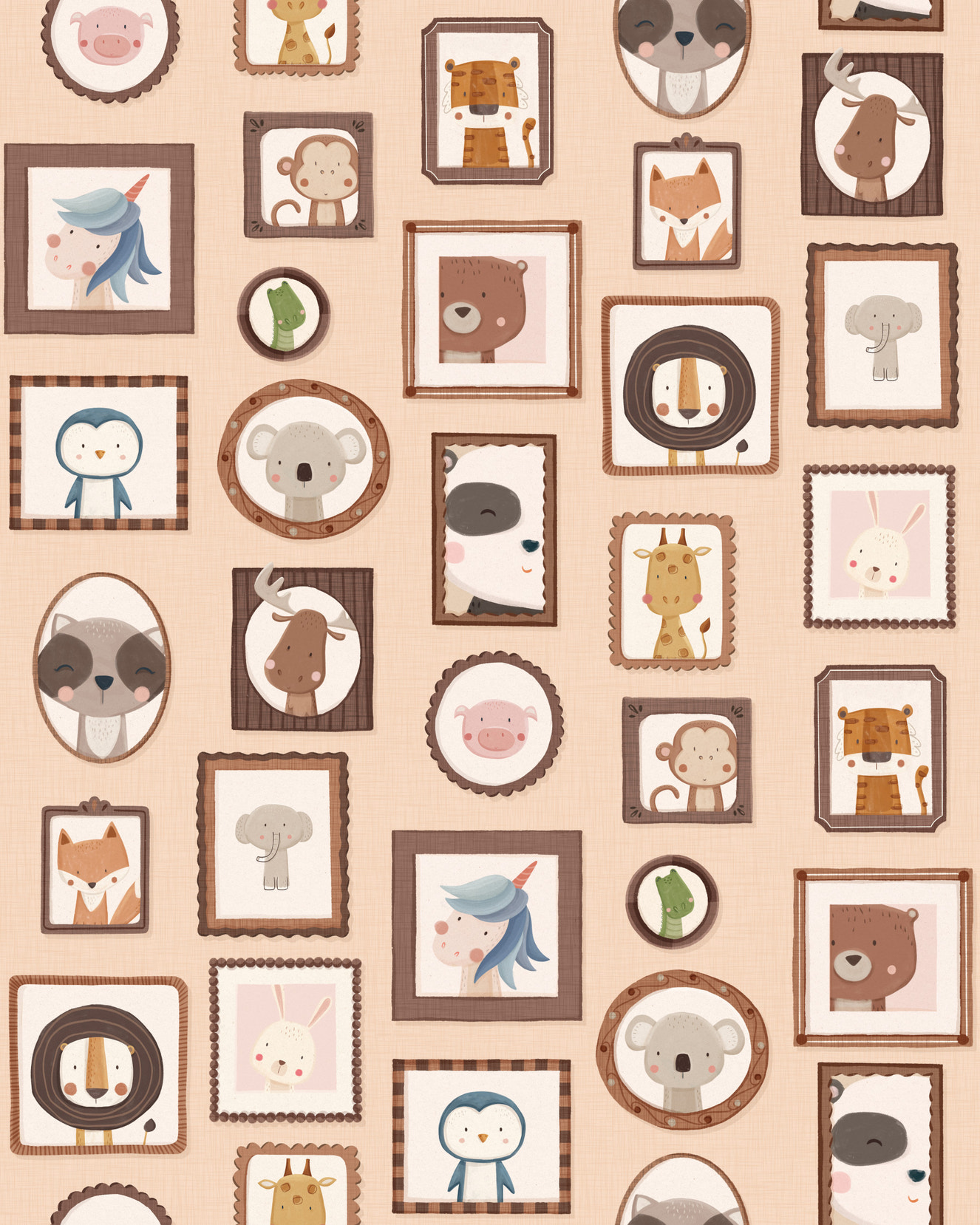 With Cute Animals Jungle Safari Wallpaper, you can make your home feel like a wild place. With its playful lions, elephants, and giraffes, this theme adds a touch of adventure while still feeling warm and inviting, making it great for sparking kids' thoughts.
