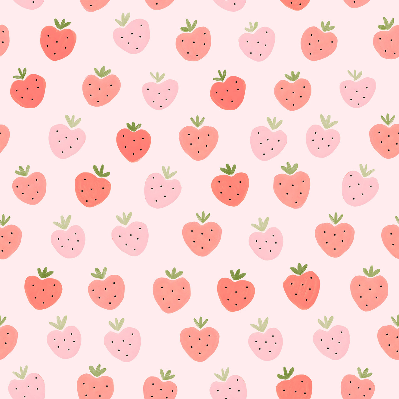 Cute Hand Drawn Pink and Red Kawaii Strawberries