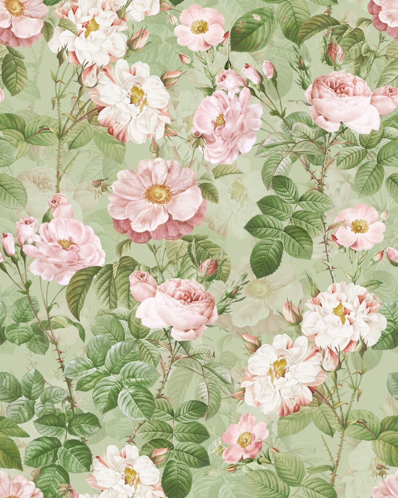 What is the difference between a rosette pattern wallpaper and a rose mural?