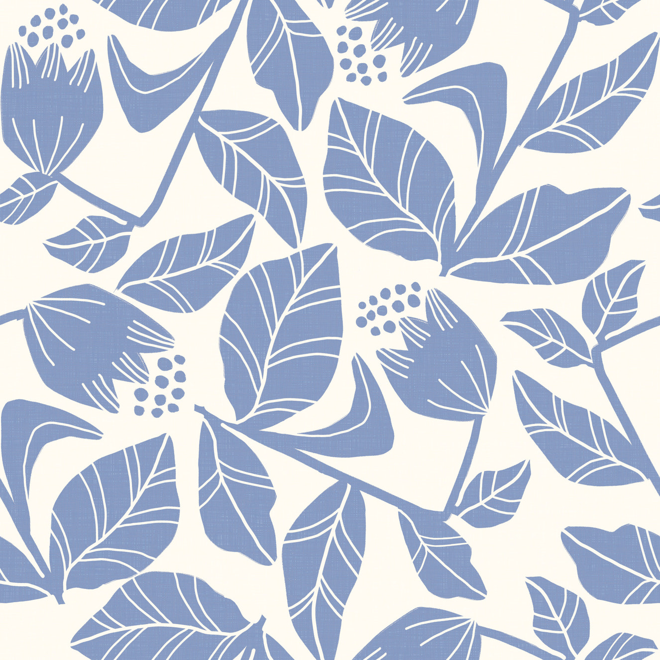 Blue is a standard colour in the Scandinavian style, often used to make people feel calm and peaceful. Scandi flower blue wallpaper has various shades. They range from light powder blues to dark navies. It's great for making any room feel calm.
