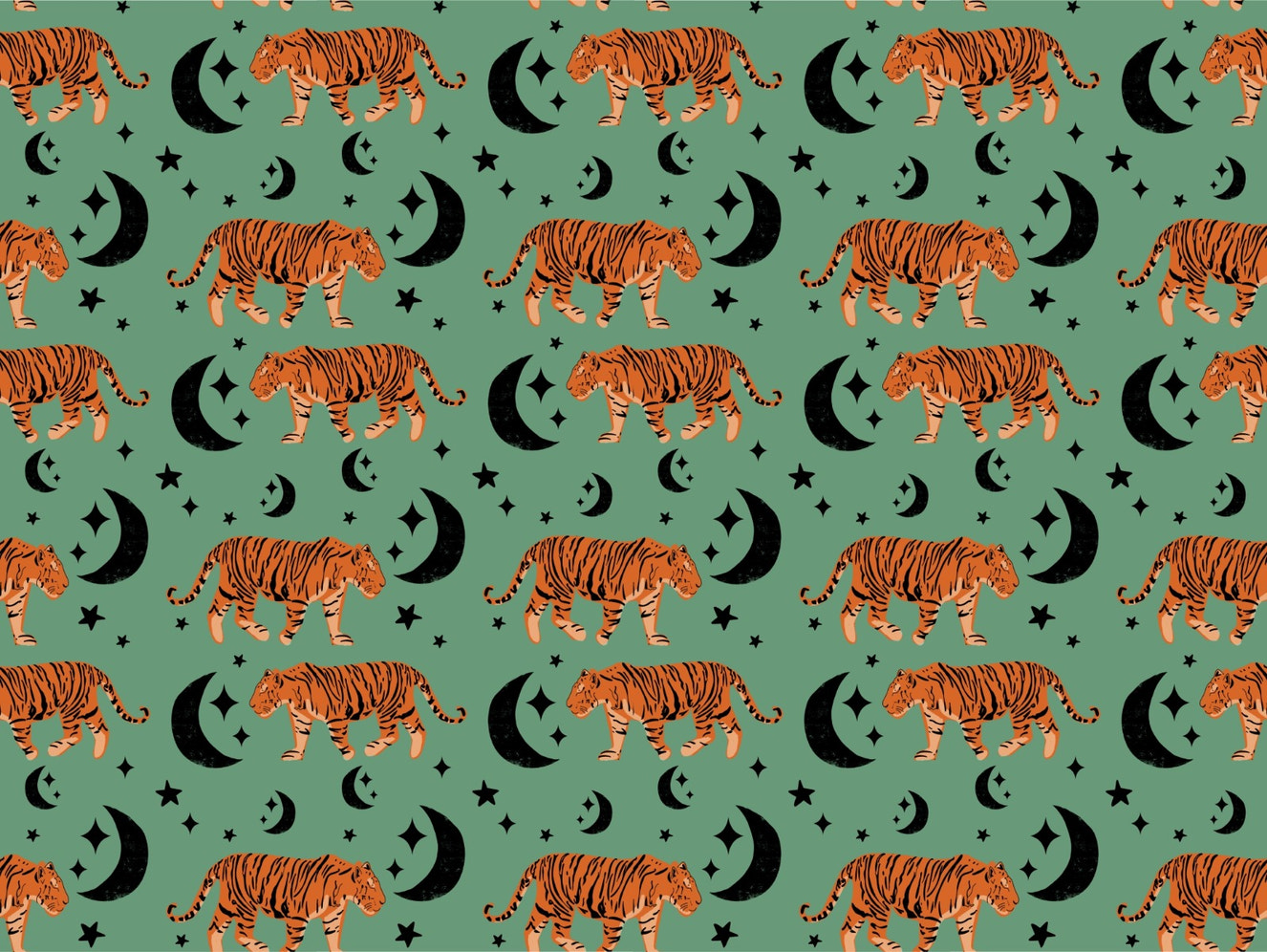 The mysterious look of tigers and the peaceful beauty of the moon come together in Tiger Moon Wallpaper. This design often shows a tiger silhouetted against a moonlight night. It combines fantasy and nature to create a peaceful and dreamy atmosphere.