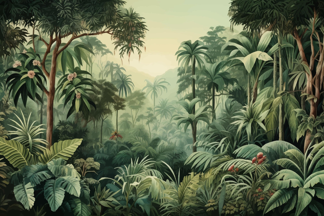 Jungle wallpaper mostly depicts a denser, more chaotic foilage and with the addition of colorful animals the whole scene gets high-energy look. Rainforest wallpaper on the other hand is made up of layers of lush vegetation and often employs a gentle color scheme which invites the sense of deep, serene, and quiet immersion.
