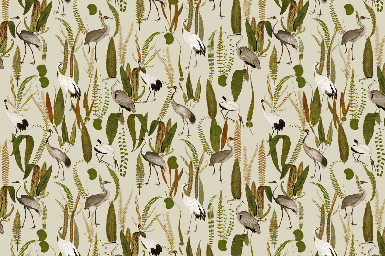 Chinoiserie Cranes in Pomegranate Lemon Grove